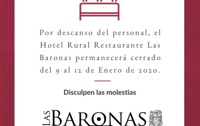 El fin de semana que viene, en Las Baronas Hotel Rural Restaurante descansamos. Disculpen las molestias. Y trasladamos la tercera fecha de LOS PUCHEROS DE